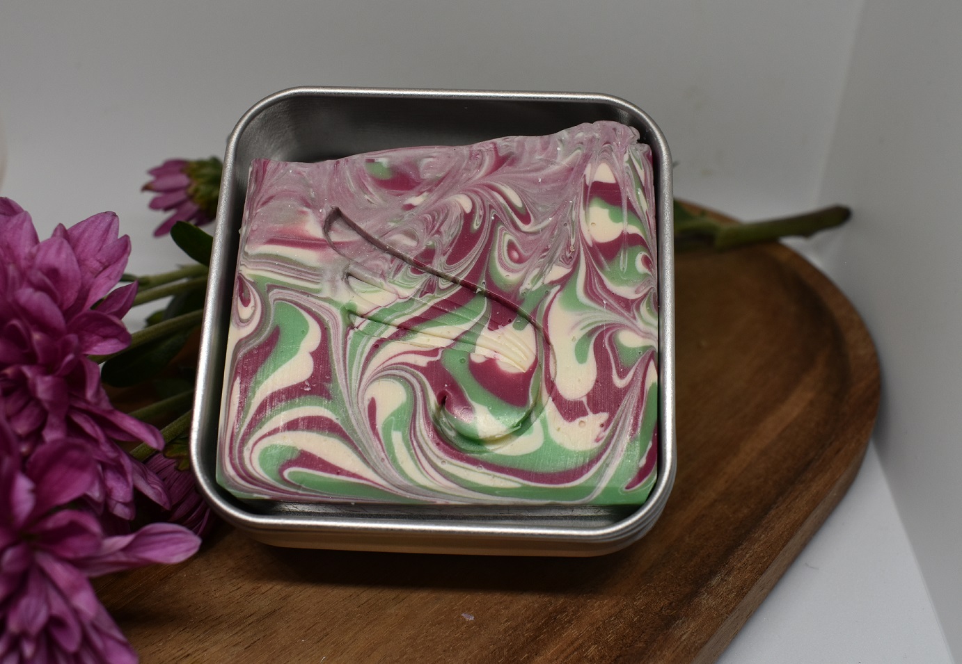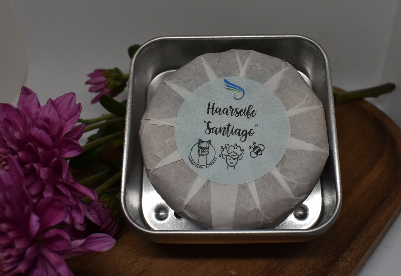 Mit ihrem schlichten, silbermatten Design passt sie zu allen unserer handgemachten Naturseifen – egal, ob Dusch-, Haar- oder Pflegeseife.